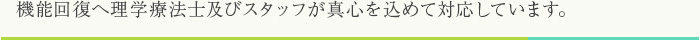 リハビリテーション科では、入院・通院患者さんに対し、リハビリテーションを実施しています。スタッフは理学療法士1名、アシスタント3名と少人数ですが、アットホームな雰囲気で、毎日患者さんに笑顔と安らぎを提供しています。