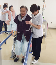 入院患者さんに対しては、廃用症候群を予防しながら早期の在宅復帰が図れるよう退院前訪問などを積極的に行い、日々のリハビリテーションに反映させています。